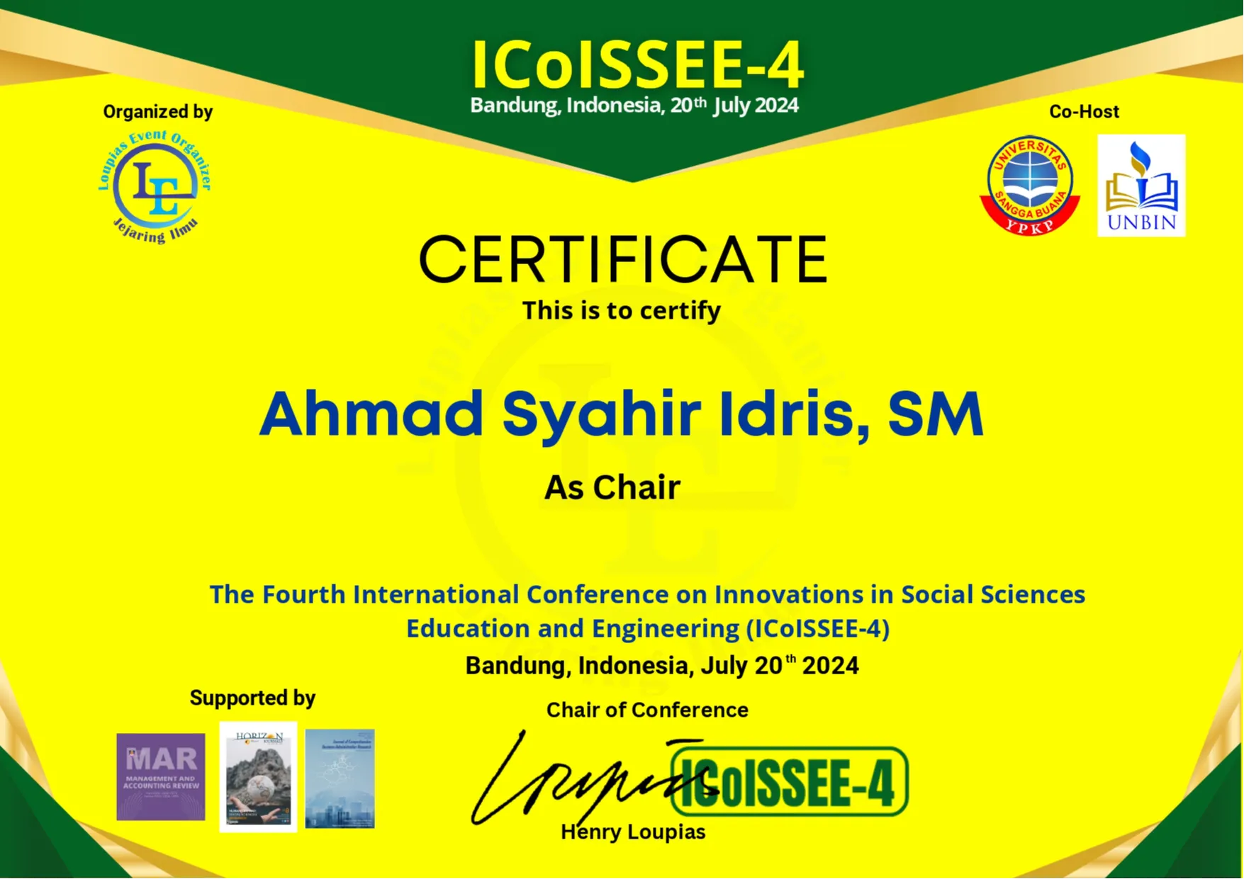 Bandung, 20 Juli 2024 — Konferensi Internasional Keempat tentang Inovasi dalam Pendidikan Ilmu Sosial dan Teknik (ICISSEE 2024) resmi dibuka hari ini di Bandung, dengan Ahmad Syahrir Idris, SM, mahasiswa Magister Ilmu Pemerintahan Universitas Mulawarman, memimpin sebagai Ketua Acara. Konferensi ini dihadiri oleh lebih dari 300 peserta yang berasal dari berbagai negara, termasuk akademisi, profesional, dan mahasiswa, untuk menjelajahi perkembangan terbaru dan inovasi dalam bidang ilmu sosial dan teknik.