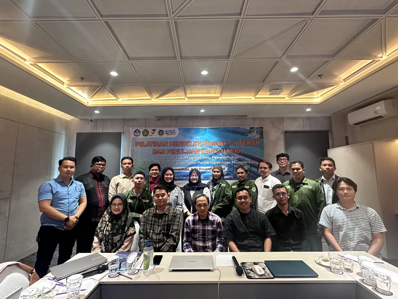 Program Magister Ilmu Pemerintahan Fakultas Ilmu Sosial dan Ilmu Politik (FISIP) Universitas Mulawarman (UNMUL) mengadakan pelatihan penulisan Mendeley, Publish or Perish, serta penulisan karya ilmiah bagi mahasiswa Magister Ilmu Pemerintahan kelas reguler angkatan 2024. Pelatihan ini berlangsung pada tanggal 9-10 Desember 2024 di Hotel Foxlite Samarinda dan diikuti oleh seluruh mahasiswa angkatan 2024.