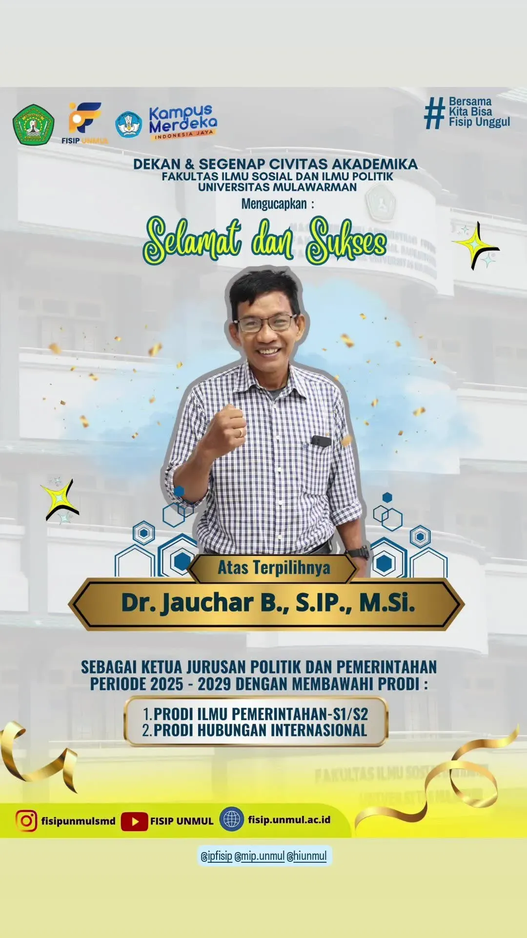 Selamat dan Sukses Atas Terpilihnya Dr. Jauchar B, S.IP., M.Si Sebagai Ketua Jurusan Politik dan Pemerintahan Periode 2025-2029