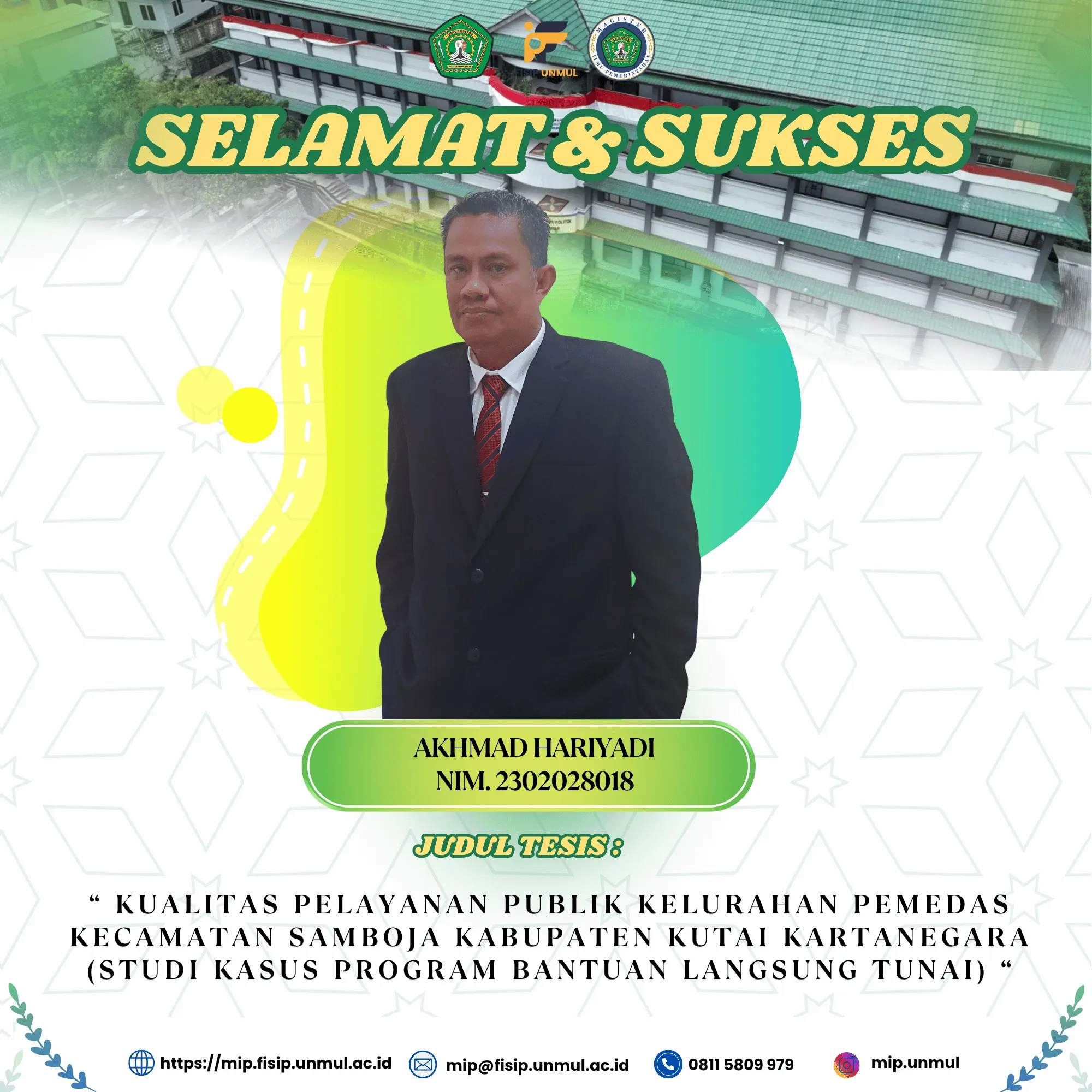 Sekali lagi, selamat dan sukses kepada Akhmad Hariyadi. Semoga pencapaian ini menjadi langkah awal menuju kontribusi yang lebih luas di bidang pemerintahan.