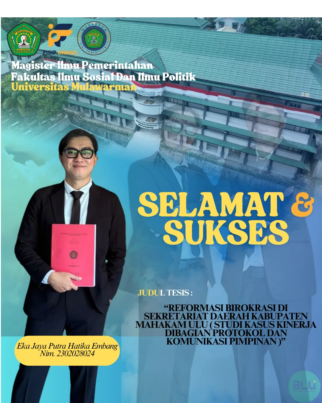 Ucapan Selamat dan Sukses kepada Eka Jaya Putra Hatika Embang atas Keberhasilan Menyelesaikan Ujian Tesis Pertama Angkatan 2023 Kelas Kerjasama Mahakam Ulu