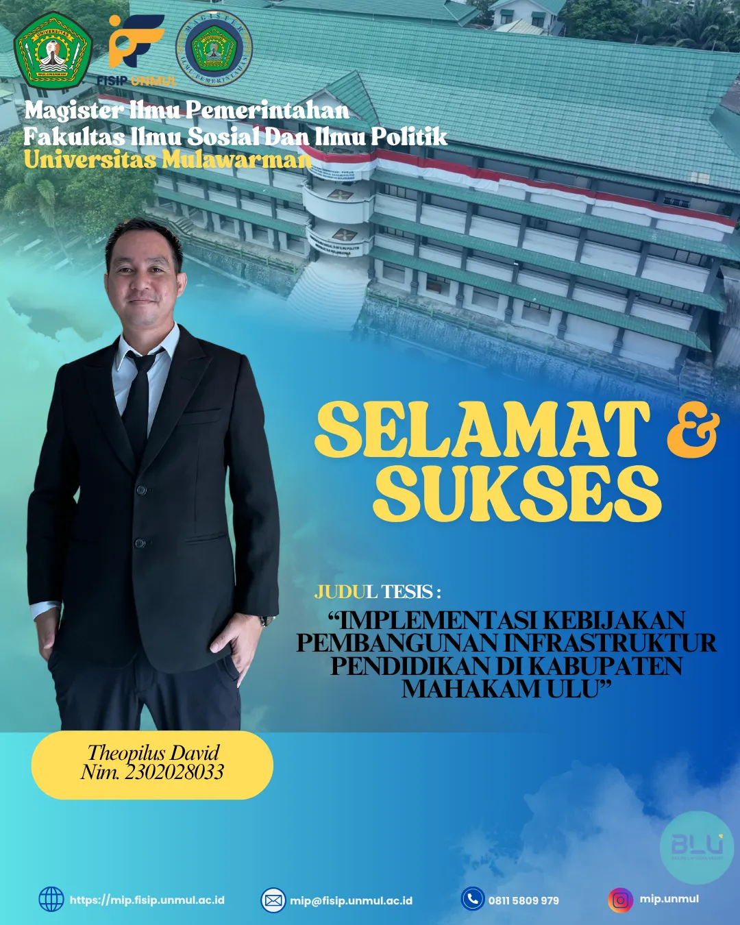 Ucapan Selamat dan Sukses kepada Theopilus David atas Keberhasilan Menyelesaikan Ujian Tesis Angkatan 2023 Kelas Kerjasama Mahakam Ulu