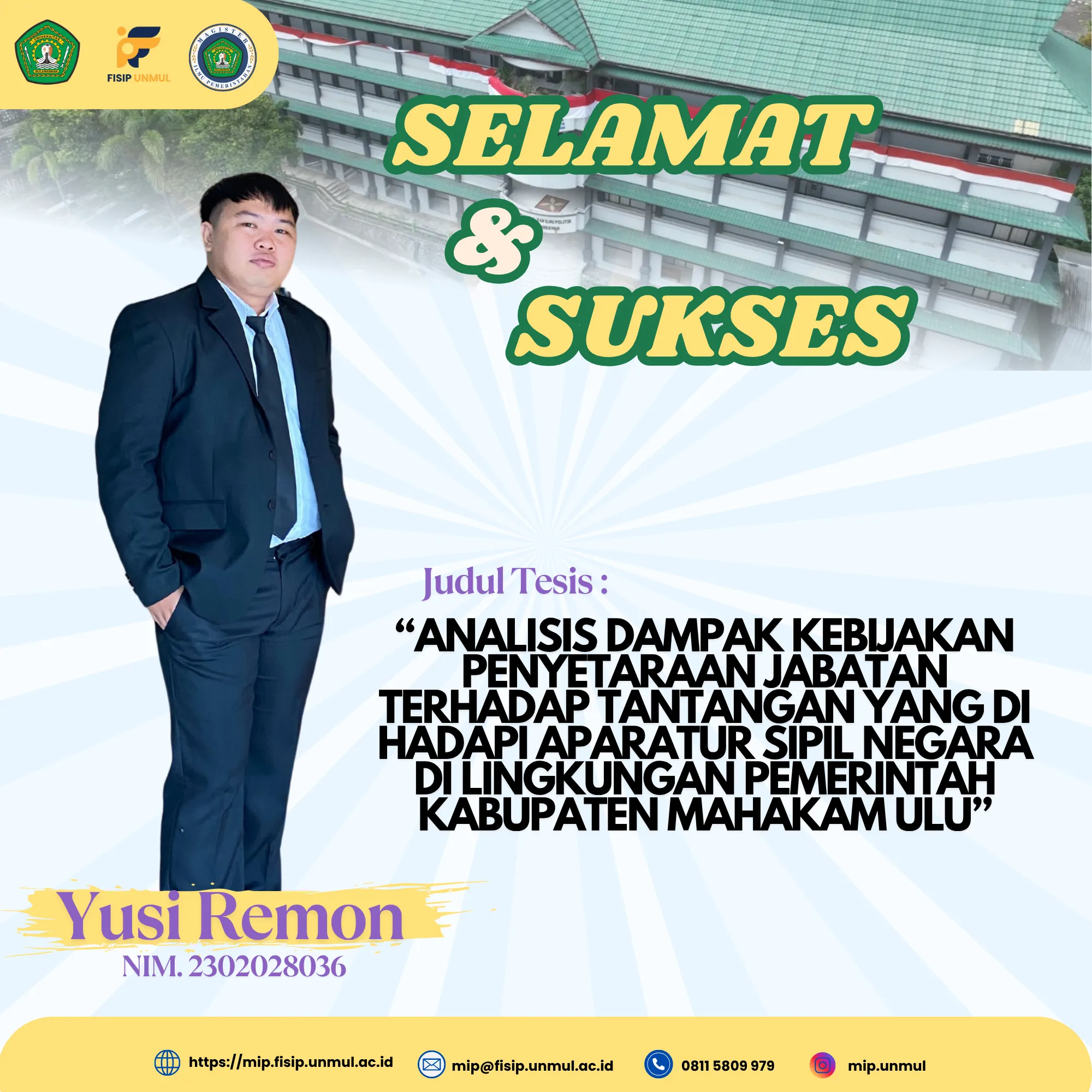 Ucapan Selamat dan Sukses kepada Yusi Remon atas Keberhasilan Menyelesaikan Ujian Tesis Angkatan 2023 Kelas Kerjasama Mahakam Ulu